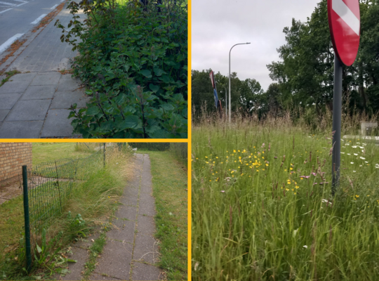 Er werden verschillende vormen van maaien toegepast, variërend van smalle stroken tot volledig gemaaid terrein waar het niet nodig was. Op andere locaties wordt er dan weer niet gemaaid met alle gevaarlijke gevolgen van dien. Zo stond het groen aan de op- en afritten zo hoog dat men aankomende fietsers nauwelijks kon zien. Of de voetpaden, waar ons bestuur heel wat meldingen kreeg van verwilderde paadjes waar rolstoelgebruikers en minder mobiele personen onmogelijk konden passeren. Allemaal ontoelaatbaar!